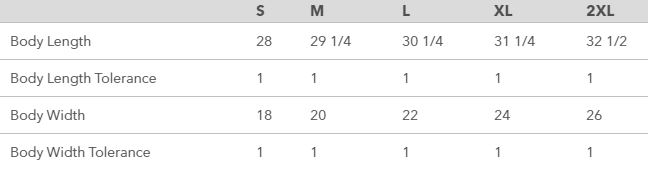 • Fabric content: 7.5-oz, 100% ring spun cotton jersey.