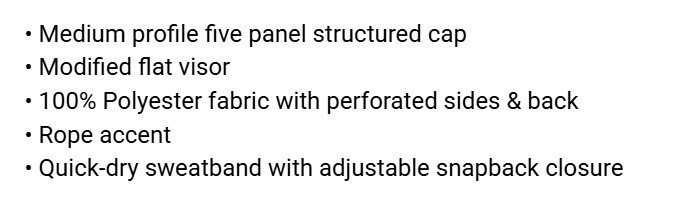 • Quick-dry sweatband with adjustable snapback closure